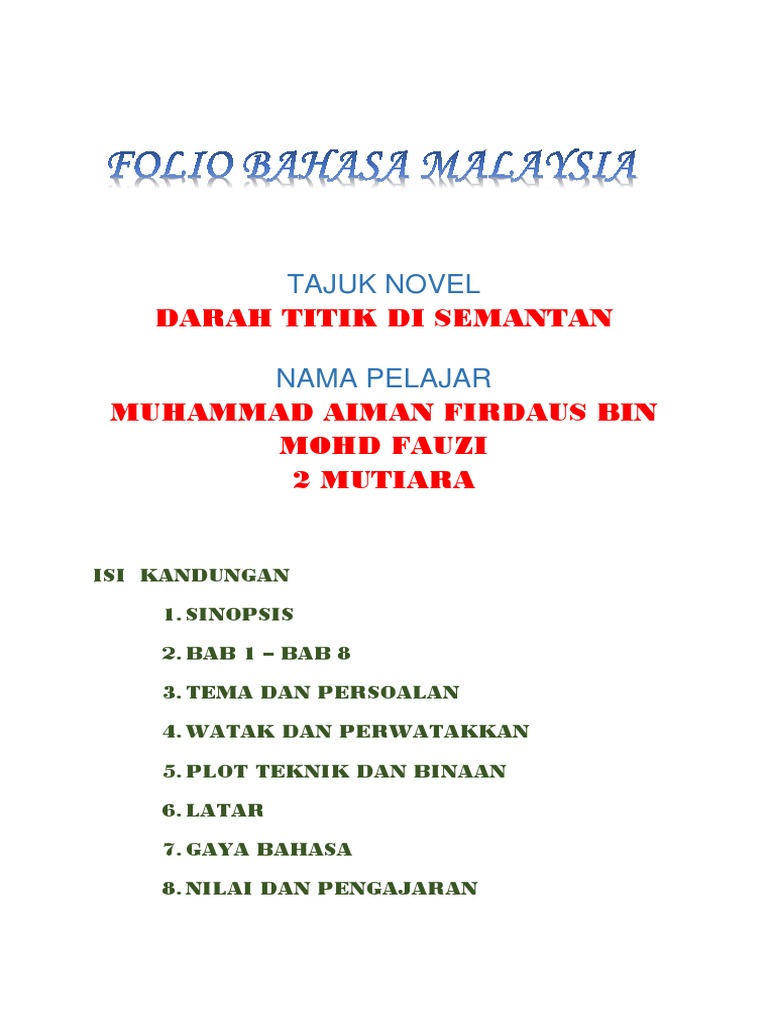 Titik Titik Sumber Pengajaran from az779572.vo.msecnd.net Want to read both pages? Antologi baik budi indah bahasa (17) antologi bintang hati (12) antologi sejadah rindu (11) novel darah titik di semantan (14) novel hempasan ombak (5) novel silir daksina (7) pkp (1) tingkatan 1 (1) tingkatan 2 (2) tingkatan 5 (2) tutorial (15). Novel bm bahasa melayu tingkatan 2, pt3 (pentaksiran tingkatan 3). Kupasan novel darah titik di semantan novel tingkatan 2. Read reviews from world's largest community for readers. Chromosome channel 3 months ago. Watak & perwatakan, plot dan nilai pengajaran. Saya dapat menyelesaikan tugasan sekolah saya dengan melihat sinopsis ini.
