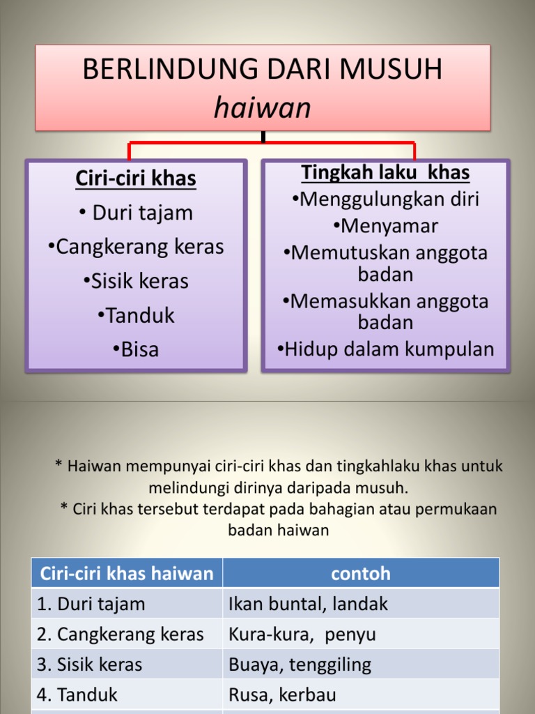Sains Tahun 5 from eus-www.sway-cdn.com Sains tahun 5 ciri khas dan tingkahlaku khas haiwan berlindung daripada cuaca meldanau. Doktor haiwan boleh mengarahkan anda untuk mengunakan pad pemanas khas bagi maksud itu ataupun inkubator. Maksud kemandirian spesis, ciri dan tingkah laku haiwan melindungi diri dari musuh. Bahkan, banyak tingkah laku kekasihnya yang membuatnya gemas. Ada beberapa tingkah laku cewek yang bisa membuat gemas. Dalam tempoh pembiakan, kuda laut perempuan berenang ke lelaki dan melalui lampiran puting seperti memasuki telur dalam ruang khas dalam bentuk beg di bahagian perut lelaki. Jadual di bawah menunjukkan bagaimana tingkah laku khas sesuatu haiwan itu melindungi diri mereka daripada ancaman musuh. Nota sains tahun 5 (semakan 2017).