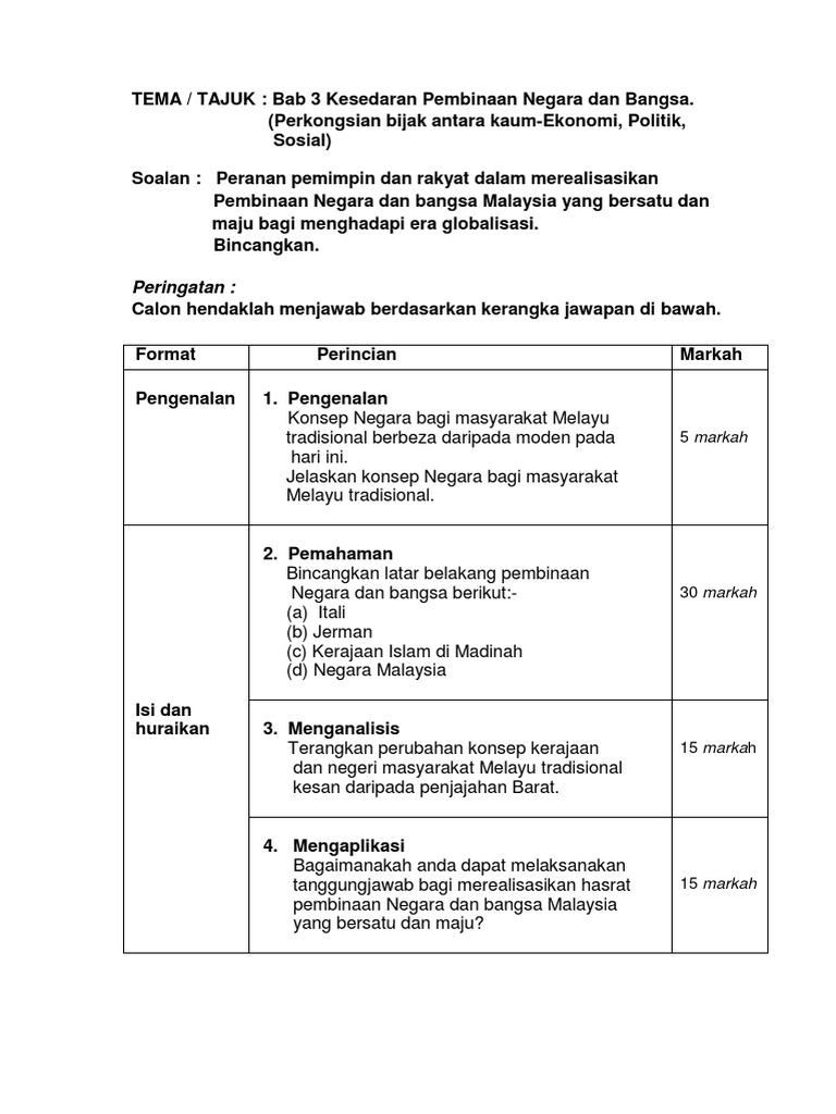 Skema Jawapan Sejarah Kertas 3 Kesedaran Pembinaan Negara Cute766 from i0.wp.com Latar belakang sistem ahli • sistem ahli bertujuan melatih penduduk tempatan dan kaum lain menerajui pentadbiran t. Pemikiran politik dan pembinaan negara bangsa: Latar belakang pembinaan negara dan bangsa di negara kita sebelum dan selepas. Latar belakang yang baik adalah yang disusun dengan sejelas mungkin dan bila perlu disertai dengan data atau fakta yang mendukung. Merupakan peribahasa untuk menanam pegangan pemerkasaan bahasa melayu dalam pembinaan sahsiah dan jati diri negara bangsa malaysia. Video menayangkan pembelajaran sejarah tingkatan 5 bab 3 dalam bentuk anime. Melalui bahasa kebangsaan, budaya kebangsaan dan rukun negara. 3.1 latar belakang pembinaan negara dan bangsa.
